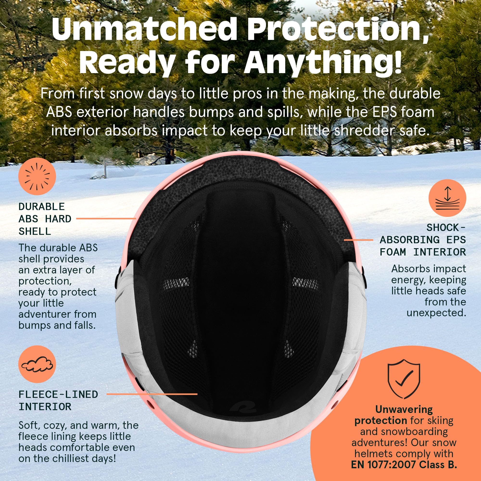 - SAFETY FIRST: Built with a tough ABS outer shell and shock-absorbing EPS foam core, this helmet shields your young rider from impacts while they learn, explore, and gain confidence on the slopes