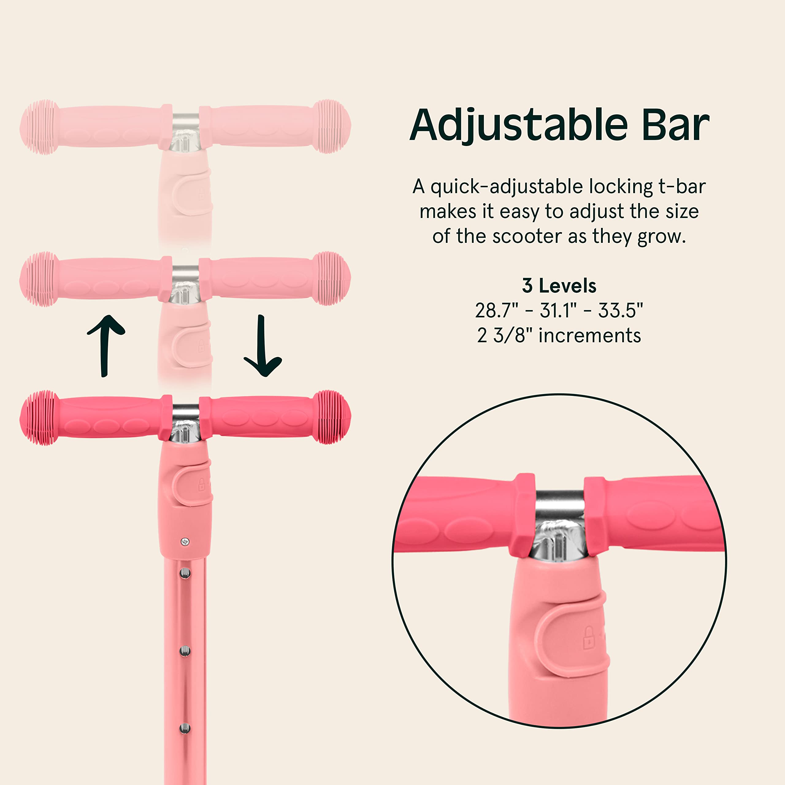 - GROW-WITH-ME DESIGN: T-bar adjusts from 26.5 to 31.5 inches height while seat accommodates different stages. Great as 3 year old boy toys that adapt as children develop their riding abilities