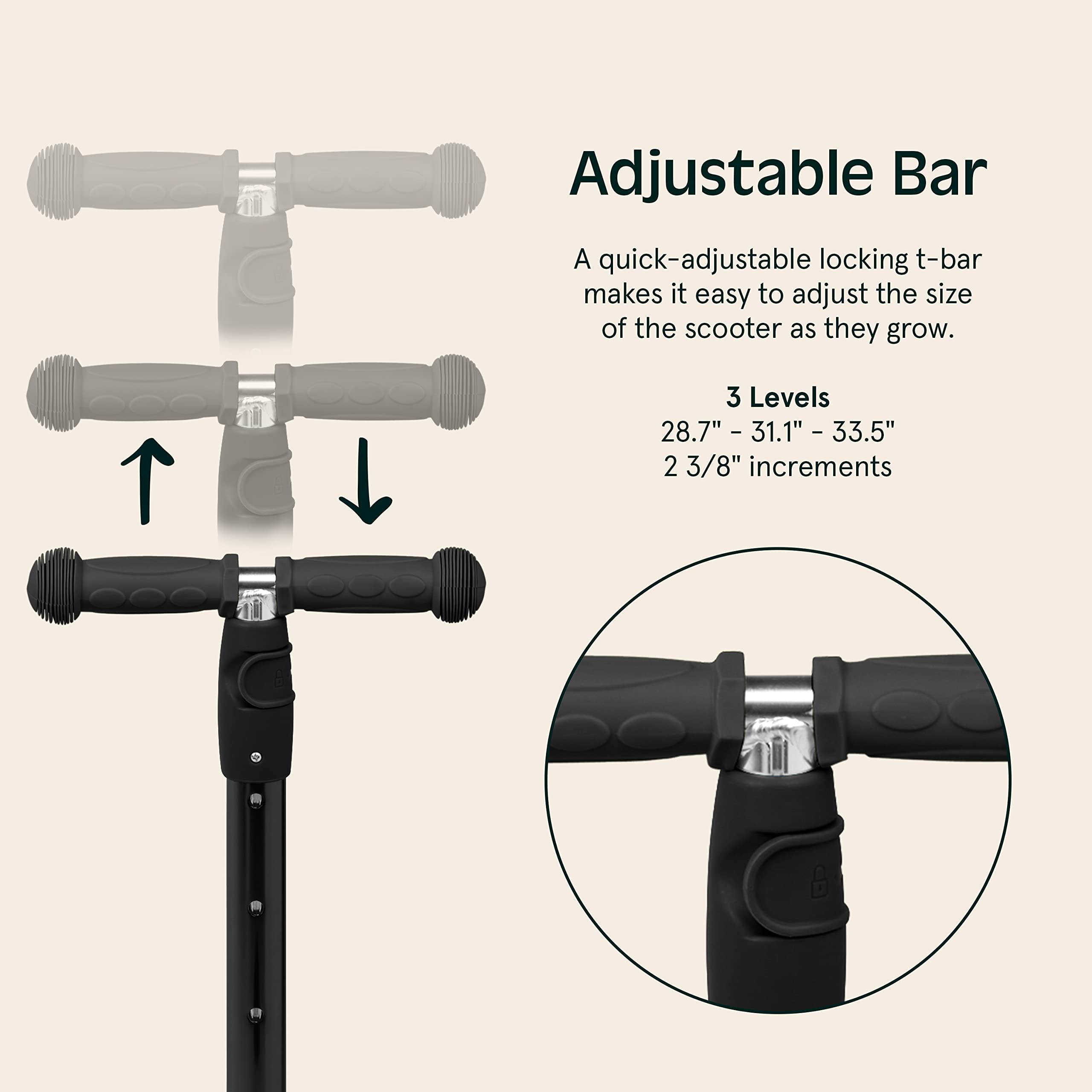 - GROW-WITH-ME DESIGN: T-bar adjusts from 26.5 to 31.5 inches height while seat accommodates different stages. Great as 3 year old boy toys that adapt as children develop their riding abilities