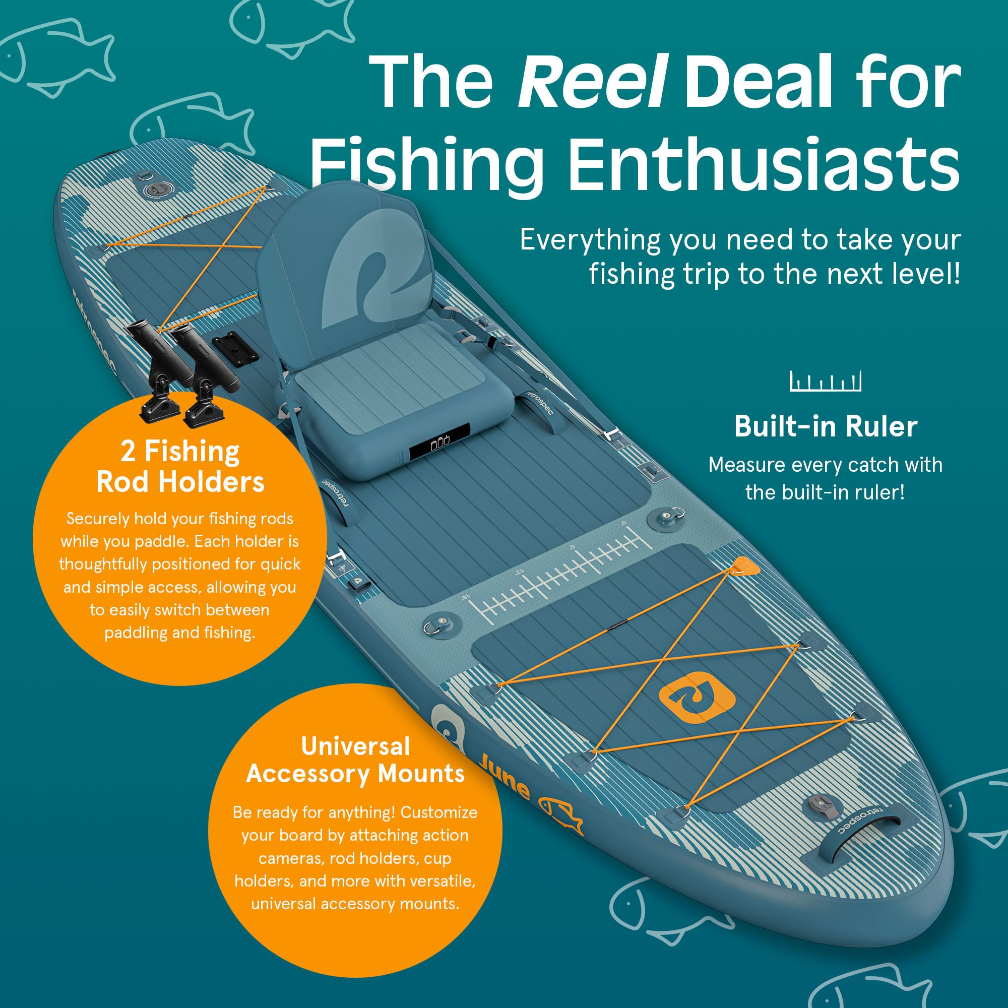 - FOR EVERY SKILL LEVEL - Whether you’re a pro angler or casting a line for the first time, the June inflatable paddle board is the perfect choice! This versatile fishing SUP combines excellent stability and maneuverability for a smooth ride for reeling, casting and coasting. With a removable AerComfort seat, a spacious non-slip EVA deck, multiple connection points, and accessory mounts, you’ll be ready for an epic day of paddle board fishing.