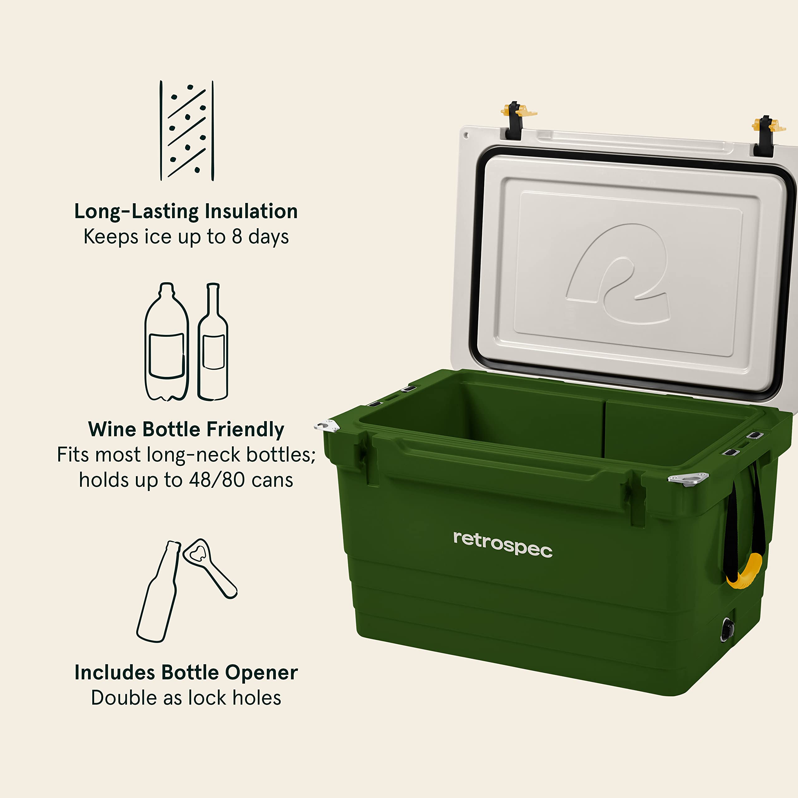 Retrospec Palisade Rotomolded Cooler - Fully Insulated Portable Ice Chest with Built in Bottle Opener, Tie-Down Slots & Dry Goods Basket - Large Beach, Camping & Travel Coolers 25, 45 & 65qt