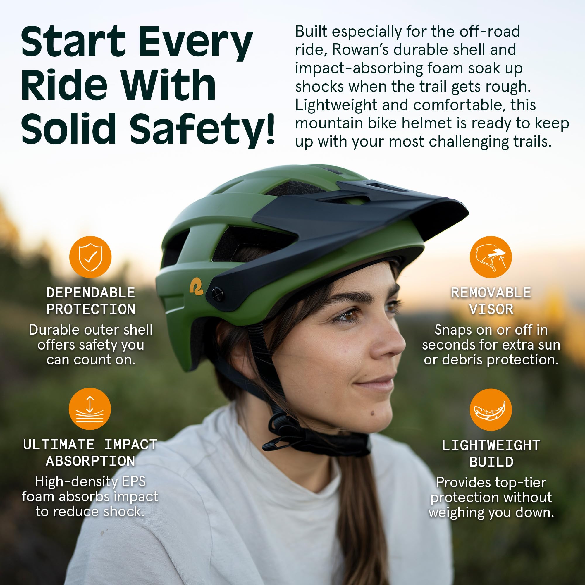 - ADVANCED SAFETY DESIGN: Essential among mountain bike accessories, this helmet uses dense EPS foam and in-mold polycarbonate shell, absorbing impact energy to protect you during tough rides