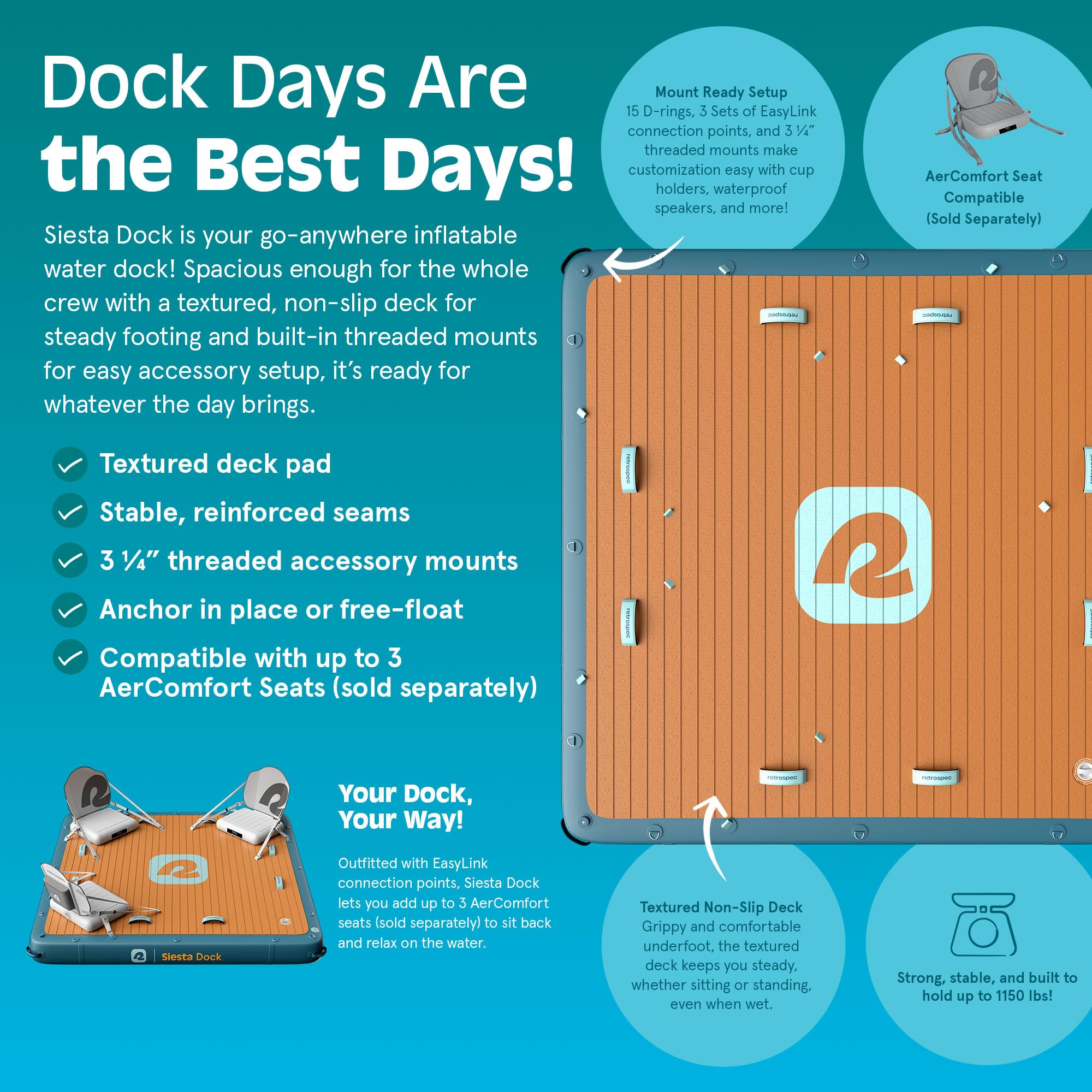 Retrospec Siesta Dock 7' & 10' XL Inflatable Floating Platform - Lake & Pool Essential with 1050lb & 1500lb Capacity - Multi-Person Water Dock with D-Rings & Pump