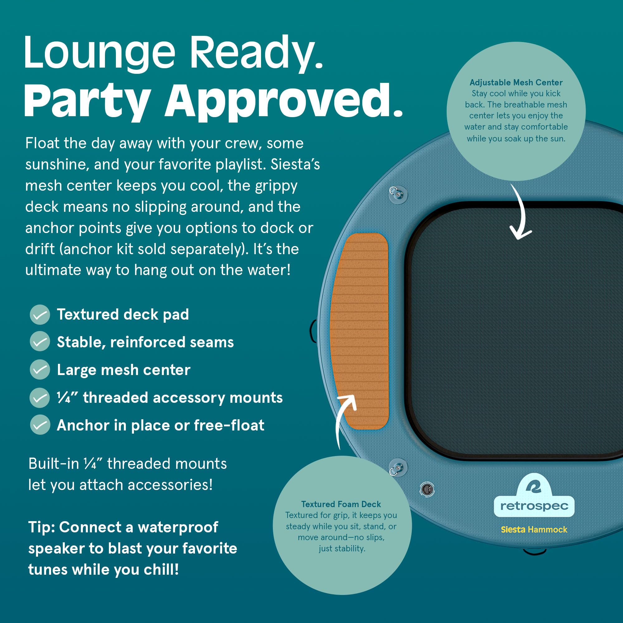 Retrospec Siesta Hammock 8' & 10' XL Inflatable Water Platform - Floating Dock with Cooling Mesh Center 660lb & 1150lb Capacity Puncture-Resistant Pool Float for Adults Lake & Ocean