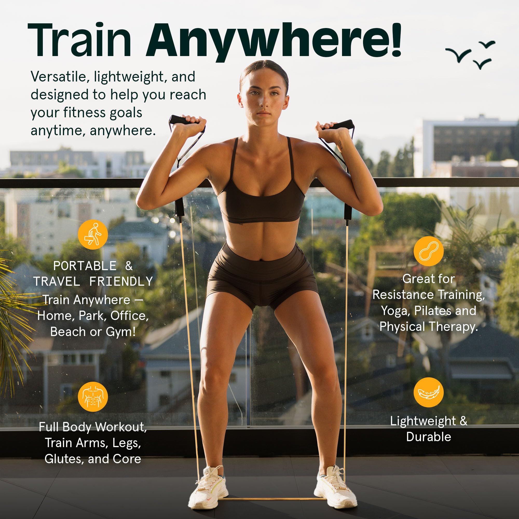 - COMPLETE FITNESS SOLUTION - Target every muscle group with resistance bands for women and men. Arms, legs, glutes, and core all get worked with this versatile exercise equipment in one compact set