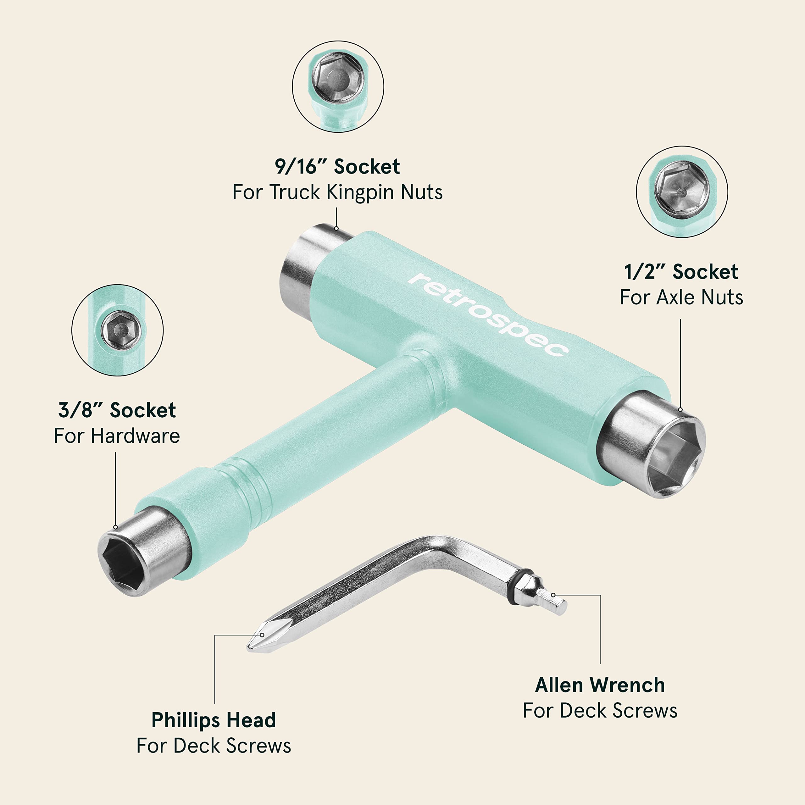Retrospec Upkeep All-in-One Multi-Function Portable Skate Tool with 2-in-1 Allen Wrench & Phillips Head Screwdriver for Adjusting and Tightening Skateboard/Longboard Wheels, Trucks, and Kingpins—