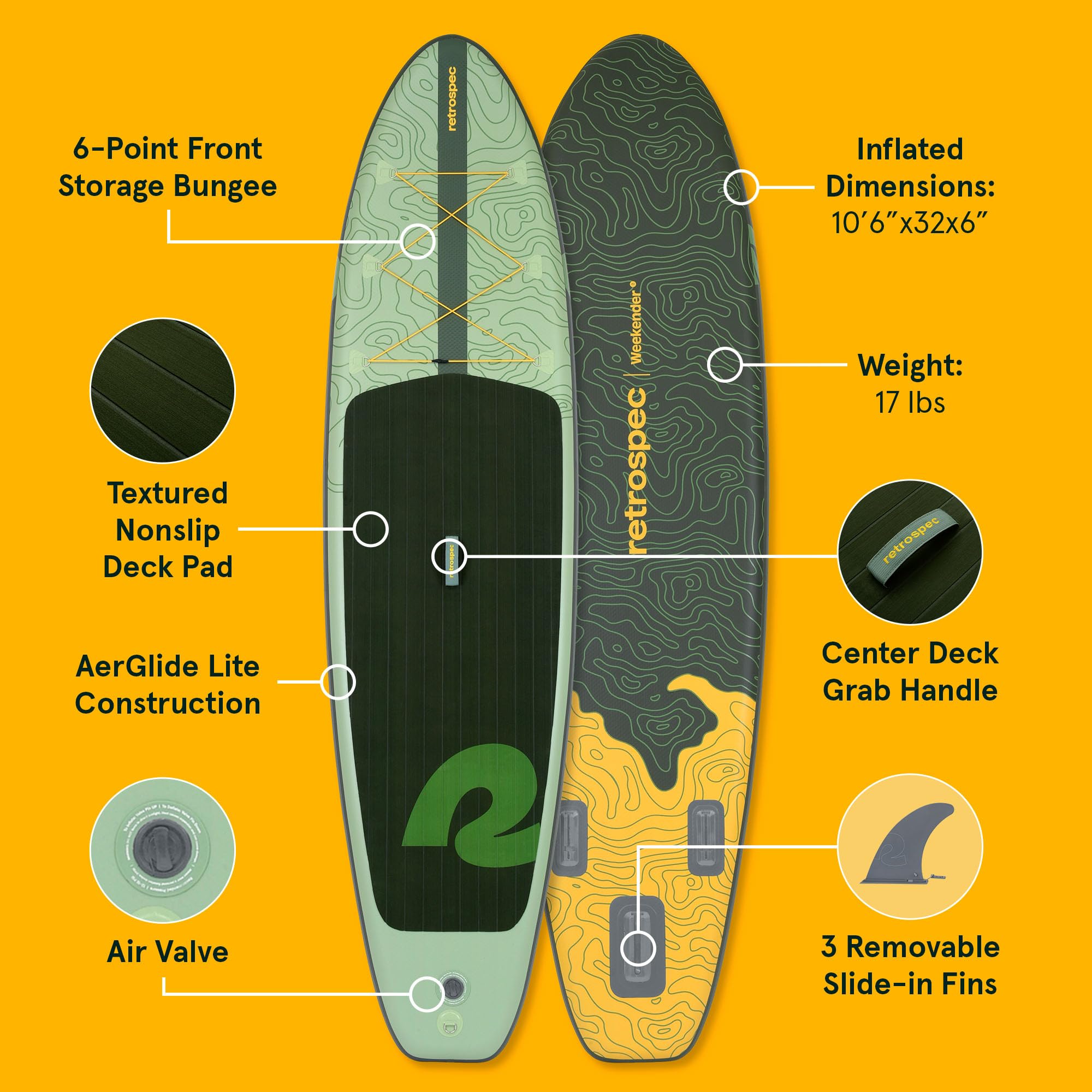 Retrospec Weekender Inflatable Stand Up Paddle Board Includes Paddle, Pump, and Accessories 10’6” Lightweight iSUP, Puncture Resistant Inflatable Paddle Board for Adults